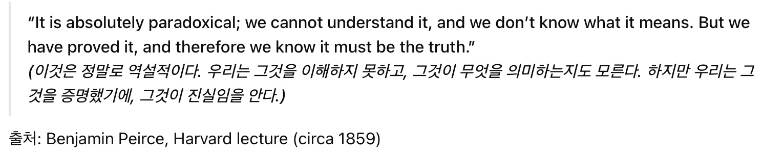 이 말 속에는 논리적으로 맞지만, 직관적으로는 너무나 경이로운 구조에 대한 감탄이 담겨 있다.